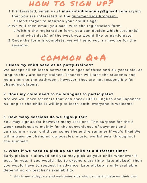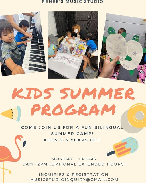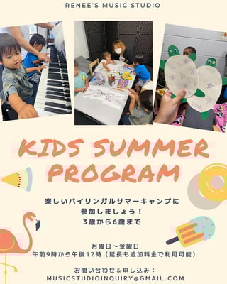 Renee‘s Music Studioは、トイレトレーニングが終わった3歳以上を対象としたKids Summer Academy を開講します!楽しいアクティビティを通じて日本語や英語、音楽に触れつつ、思い出に残る夏にしよう!